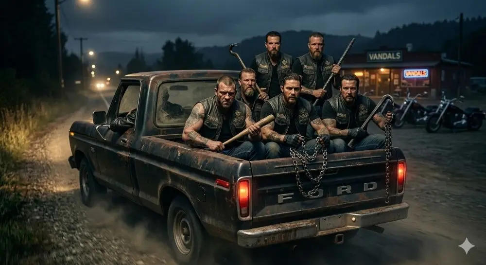 เมื่อรถของพวกมันเลี้ยวเข้าไปจอดหน้าบาร์เเห่งหนึ่ง กลุ่ม Vandals ที่เเอบสะกดรอยตามมา พวกเขาได้จอดรถทิ้งระยะห่างไว้ในเงามืด รอจนพวกมันเดินเข้าไปข้างในและเริ่มส่งเสียงเฮฮาฉลองชัยชนะอย่างย่ามใจ