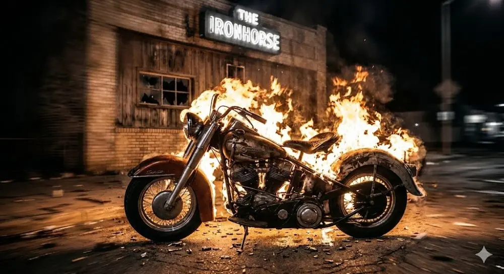 เสียงแก้วแตกผสมกับเสียงคำรามของชายฉกรรจ์นับสิบชีวิต แรงเหวี่ยงของไม้เบสบอลปะทะเข้ากับโหนกแก้มจนร่างกระเด็นข้ามเคาน์เตอร์บาร์ไปพังถังเบียร์จนหักโค่น ในความมืดที่มีเพียงแสงนีออนสลัว ระเบิดขวด ( Molotov ) ลูกหนึ่งถูกโยนข้ามฝูงชนไปปะทะกับชั้นวางเหล้า แอลกอฮอล์เข้มข้นกลายเป็นเชื้อเพลิงชั้นดี ไฟลุกพรึบขึ้นท่วมเพดานในพริบตา เสียงกรีดร้องด้วยความตื่นตระหนกดังระงมท่ามกลางกลุ่มควันที่เริ่มหนาทึบ ทุกคนต่างตะเกียกตะกายหาทางออกสวนทางกับกลุ่มคนที่ยังคงปะทะกันอย่างไม่คิดชีวิต