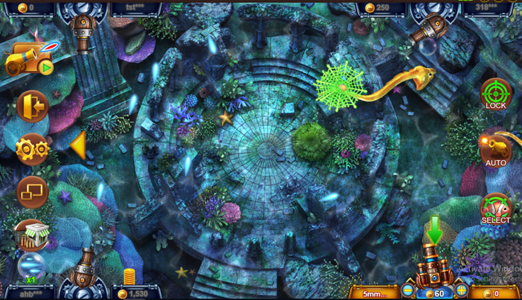 - เล่นแบบออนไลน์ กับผู้เล่นอื่นๆ โดยการเล่นรูปแบบนี้จะเล่นกับผู้เล่นที่เราไม่รู้จัก ซึ่งจะเป็นการสุ่มผู้เล่นและสุ่มห้อง บางครั้งบางห้องเมื่อเข้ามาอาจมีเราคนเดียวก็ได้ ข้อดีคือไม่มีคนแย่งยิงไอเท็ม ข้อเสียคือการจะฆ่าปลาตัวใหญ่ต้องใช้เวลาเยอะและอาจหลุดออกจากฉากไปเสียก่อน แต่ก็ต้องไม่ลืมว่าถ้าเล่นหลายคน คนอื่นก็สมารถแย่งยิงปลาที่เราเล็งเอาไว้ได้เช่นเดียวกัน
