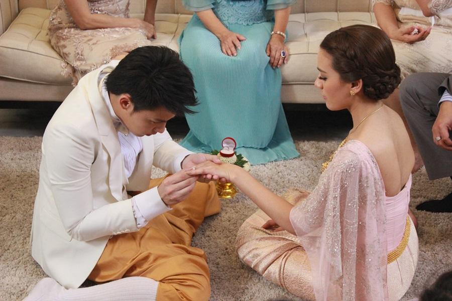 แล้วก็ได้ฤกษ์รดน้ำสังข์และสวมแหวนหมั่น