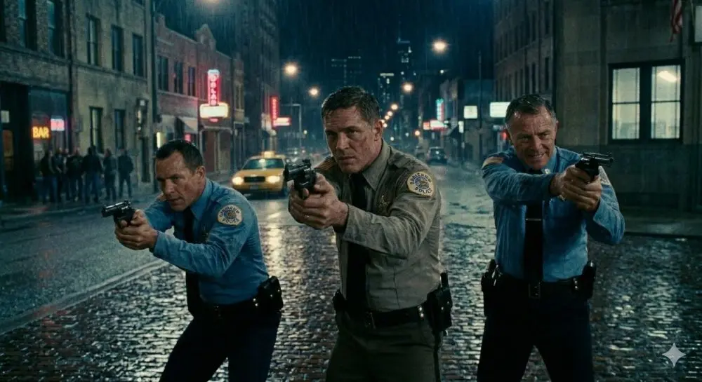 "คุกเข่าลง! ประสานมือไว้ที่หัว! ใครขยับฉันยิง!" สารวัตรแผดเสียงก้อง พร้อมตำรวจนับสิบที่เล็งปืนเข้าใส่