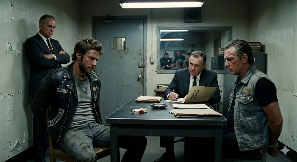 ภายในห้องสอบสวน Johnny นั่งอยู่บนเก้าอี้เหล็ก แสงไฟนีออนเหนือหัวกะพริบถี่จนน่ารำคาญ เขาจ้องหน้าสารวัตรด้วยสายตาที่พร้อมจะขย้ำคอใครสักคน ข้างๆ เขาคือ "Butch" ชายร่างยักษ์ที่มีรอยแผลเป็นคาดผ่านคิ้ว และ "Jax" สมาชิกใจร้อนที่มักจะใช้กำปั้นก่อนสมอง ทั้งคู่ถูกรวบตัวมาในสภาพยับเยินไม่ต่างกัน