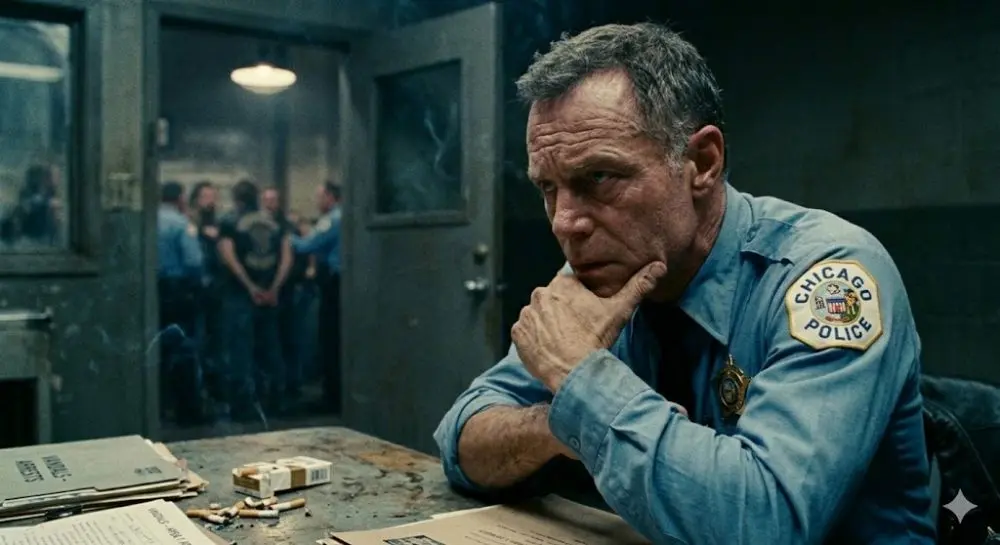 ( ตำรวจนายอื่นรีบเข้ามาจัดการเอกสาร บรรยากาศในห้องเงียบกริบชั่วขณะ ก่อนที่จอนนี่จะขยับตัวลุกขึ้นและเดินตรงมาหานักสืบ )
