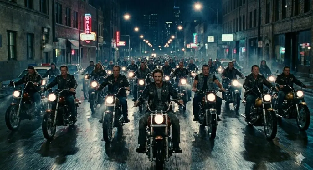 เสียงหนึ่งตะโกนก้องสอดรับกับเสียงระเบิดจากท่อไอเสียที่ดัง "ปัง!" ราวกับเสียงปืนใหญ่เปิดศึก Johnny กระโดดขึ้นซ้อนท้ายรถคันหน้าสุดโดยไม่หันกลับมามองข้างหลัง ขบวนเหล็กกล้าพุ่งทะยานออกไปเป็นสายยาวประหนึ่งอสุรกายที่หิวโหย ทิ้งไว้เพียงรอยไหม้ของยางบนพื้นถนนและคำประกาศกร้าวที่ยังคงสั่นประสาทผู้ที่ได้ยิน...