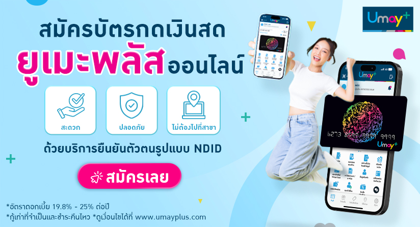 หากคุณกำลังมองหาช่องทางการสมัครสินเชื่อออนไลน์ที่รู้ผลทันที มั่นใจได้ และถูกกฎหมาย บัตรกดเงินสดยูเมะพลัส คือทางเลือกที่ตอบโจทย์ ด้วยกระบวนการสมัครออนไลน์ที่สะดวกและรวดเร็ว พร้อมเงื่อนไขที่โปร่งใสภายใต้การกำกับดูแลที่ชัดเจน ให้คุณมีวงเงินสำรองพร้อมใช้ในยามฉุกเฉินได้อย่างสบายใจ ช่วยให้คุณบริหารจัดการค่าใช้จ่ายจำเป็นได้อย่างมีประสิทธิภาพและไร้กังวล